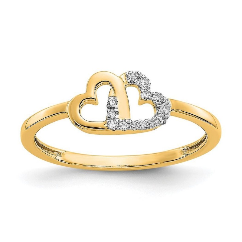 Anello a doppio cuore con diamanti da 2 mm e 10 carati - Misura 7,00 - 1,1 grammi - Peso del diamante 0,06 carati in oro giallo 10 carati - - Scatola portagioielli pronta da regalo inclusa - Larghezza fascia: 2 mm - Larghezza articolo: 2 mm - Finitura: lucida - ::: ::: [ Cura e gestione: Diamante ] - Pulire con acqua tiepida e sapone e una spazzola morbida o un panno. :::